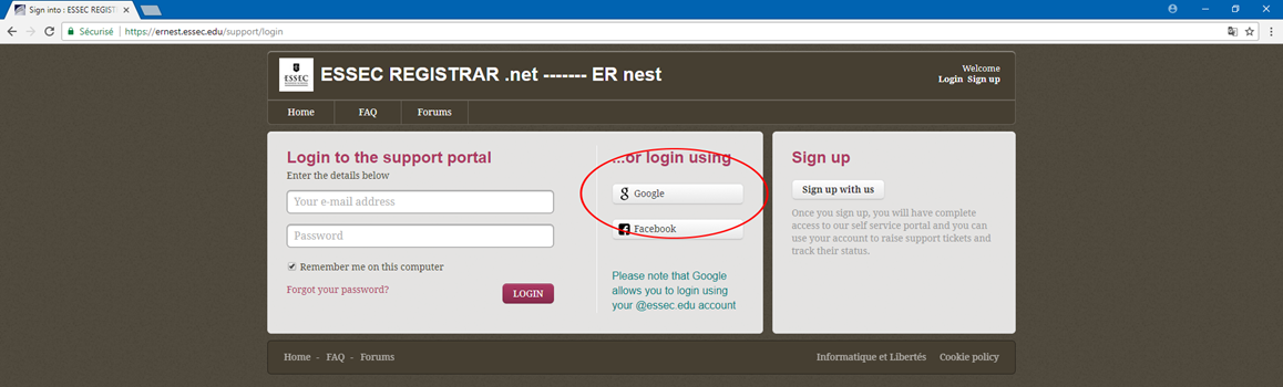 Students and Essec Staff need to use their essec.edu account to log into ER Nest (ESSEC Registrar .net) :